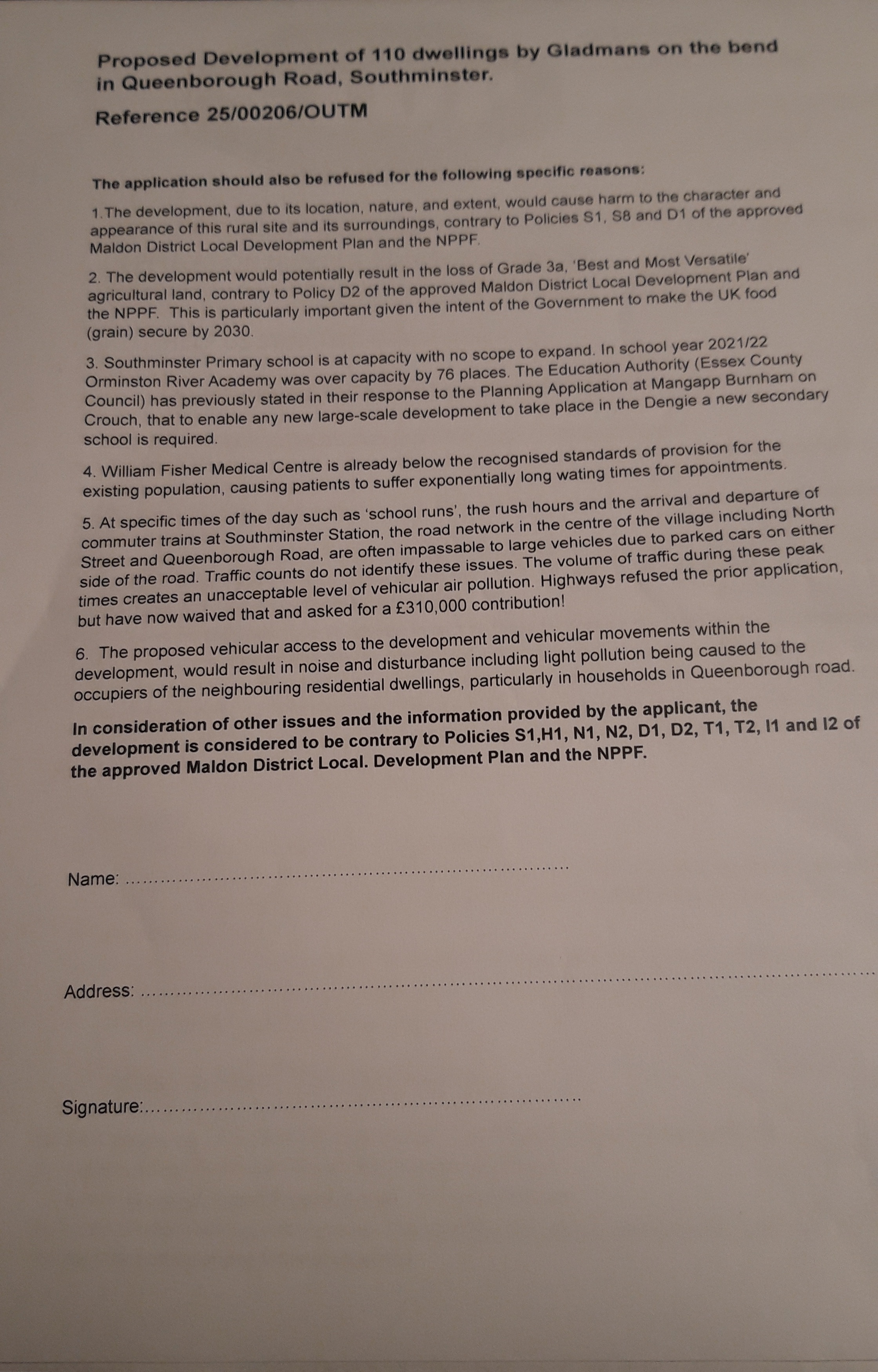 Description:A collection of reasons why the proposed development should be rejected.
